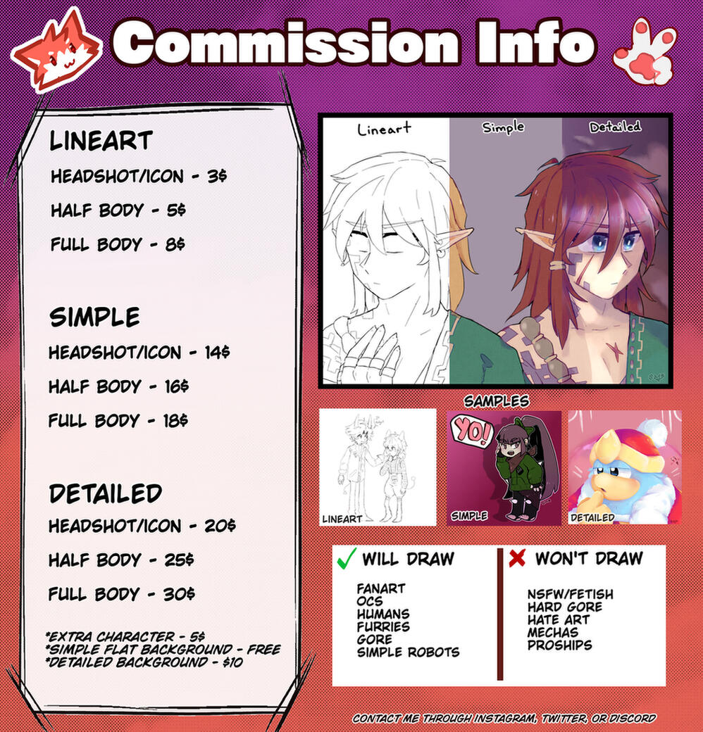 Please contact me through Instagram or Discord if you are interested in a commission.